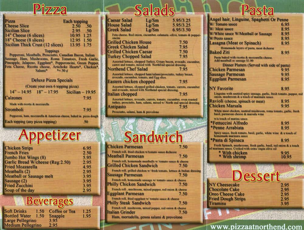 North End Pizzeria Menu In Burbank California Usa